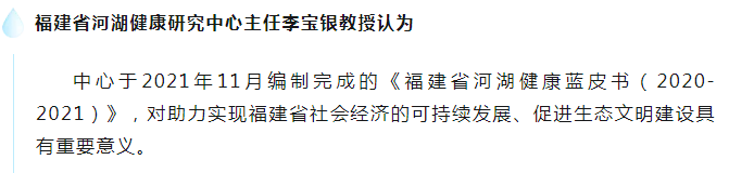 河湖健康研究中心副主任苏玉萍教授发布了《2021年福建省河流健康蓝皮书》,介绍了福建河流概况、评估范围、评估指标、评估方法、179条河流和42座重要湖库的评估结果,展示了福建省河流健康评估工作的特色。